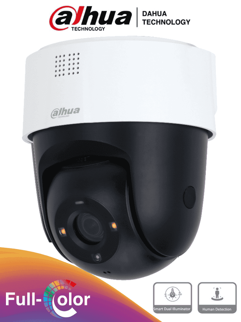 DAHUA SD2A200-GN-A-PV – Camara IP PT de 2 Megapixeles Full-Color/ Disuasi?n Activa/ Lente Fijo/ Luz Blanca de 30 Metros/ IR de 30 Mts/ Smart H.265/ Ranura para MicroSD/ Audio Bidireccional con Altavoz Integrado/ IP66/ PoE/