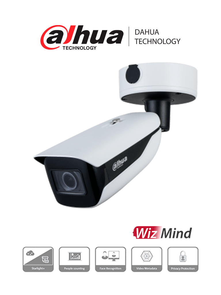 DAHUA IPC-HFW7442HN-ZFR – C?mara IP Bullet Resoluci?n de 4 MP/ Lente Mot. 2.7 a 12mm/ ? 114?-47?/ IR 60 mts/ IA WizMind/ Reconocimiento Facial/ Metadatos de Video/ Conteo de Personas/ Starlight/ ePoE/ WDR 140dB/ H.265/ IP67/ IK10/ E&S Alarma/ E&S Audio/