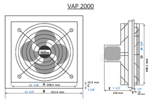 Extractor Axial en acoplamiento directo 16 Pulgadas, aspas de aluminio con alineación y balanceo preciso.