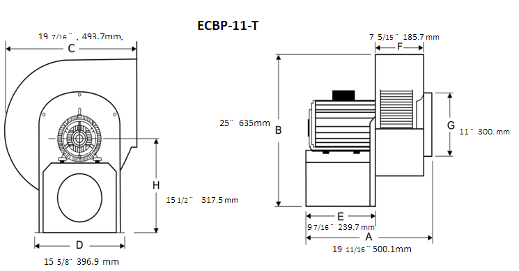 Extractor Centrifugo 11″ 2 Hp baja presión Trifásico