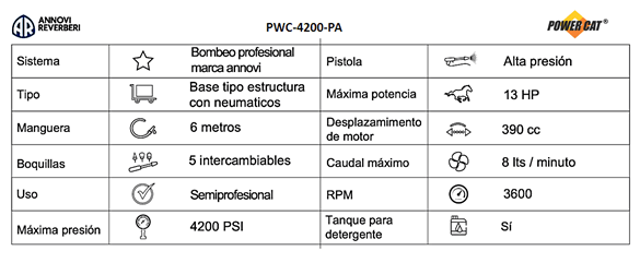 Hidrolavadora 4200 Psi 13 Hp PWC-4200-PA Power Cat