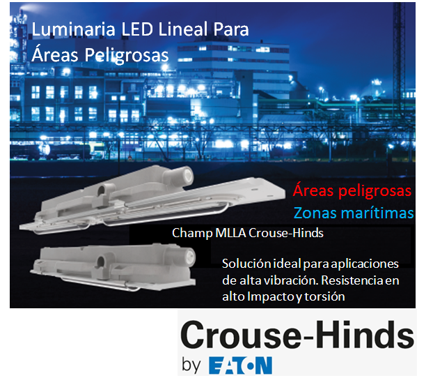 Champ MLLA Crouse-Hinds para sustituir fluorescentes T12, T8 y T5HO en aplicaciones hostiles y peligrosas. Solución ideal para aplicaciones de alta vibración
