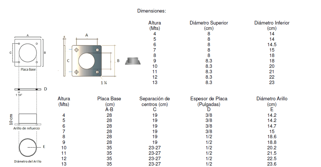 Esta pieza va soldada en la parte superior del poste y sirve como soporte para luminarias llamadas “punta poste” o bien adaptar coronas fijas que pueden variar su diámetro con respecto a las luminarias que se requiera instalar, así como la altura misma del poste. Este elemento de sujeción es fabricado con tubo de 2” en la cedula que requiera el cliente.
