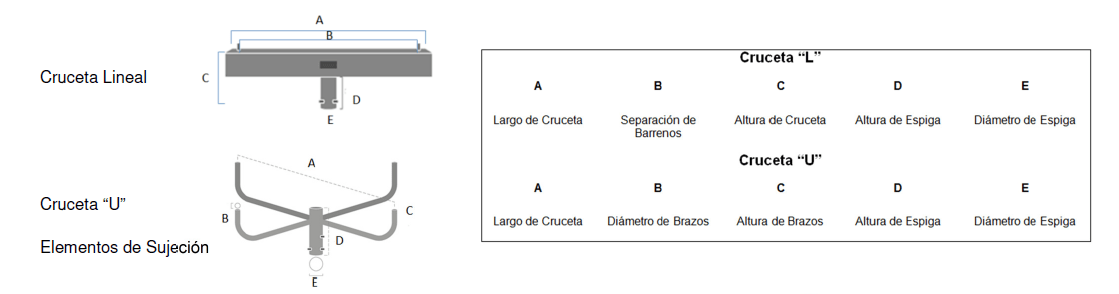 Se cuenta entre otras con las crucetas tipo “Lineal” siendo la estándar y a su vez la cruceta tipo “U” que varía en diseño y materiales de fabricación.