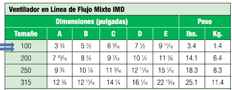 Ventilador en línea de flujo mixto 4″ IMD 100-K
